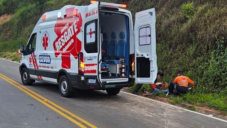 Motociclista é socorrido pelo Sevor após acidente em J. Monlevade
