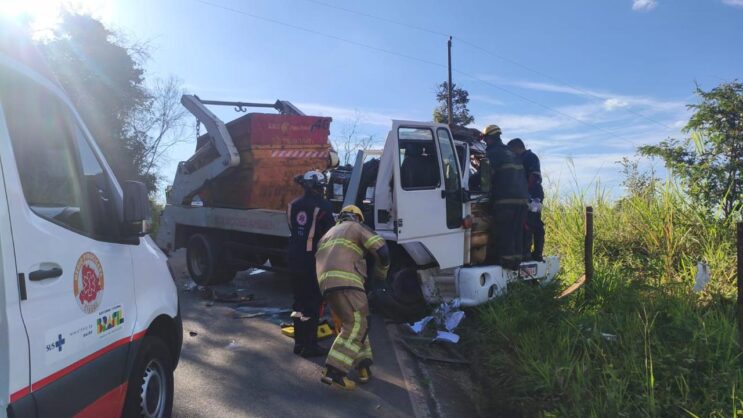 Acidente entre caminhões deixa vítima presa às ferragens em Itabira