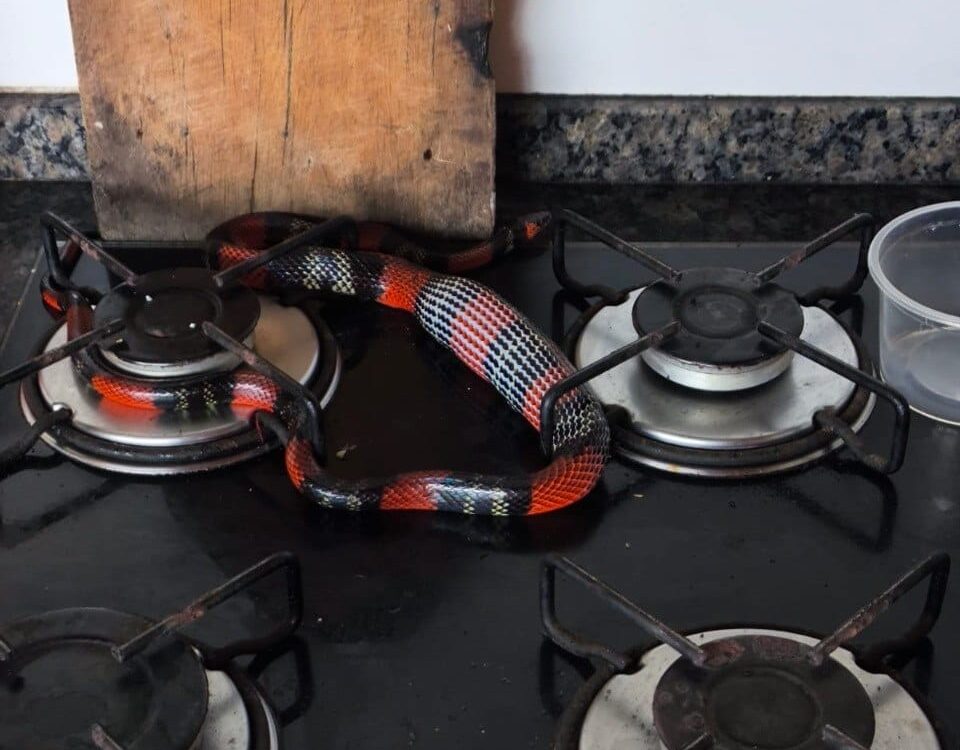 Cobra-coral é encontrada sobre fogão em cozinha de residência