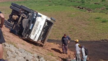 Caminhão carregado com asfalto tomba na Av. Machado de Assis