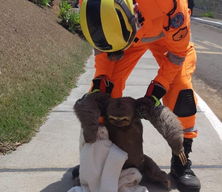 Militares do Corpo de Bombeiros foram acionados na manhã de domingo (19/09), por volta das 9h40, para resgatar um bicho-preguiça que havia invadido a área externa de uma residência em um condomínio no bairro Acamari em Viçosa, no interior de Minas Gerais.
