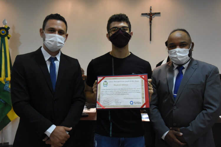 A moção de aplausos, de autoria do vereador Fábio Justino Alves (Sassá-PSB), foi aprovada em plenário, na sexta reunião ordinária, realizada em 7 de abril. O certificado foi entregue pelo vereador autor e pelo Presidente da Câmara, vereador Diego José Ribeiro (PDT). Em 2019, o João Lucas havia recebido a moção honrosa na competição. Além da conquista da medalha de bronze, os estudantes foram convidados para participar do Programa de Iniciação Científica (PIC), que propicia a todos os premiados da OBMEP a entrar em contato com interessantes questões no ramo da matemática, a fim de ampliar o conhecimento científico, preparando-os para um futuro desempenho profissional e acadêmico.