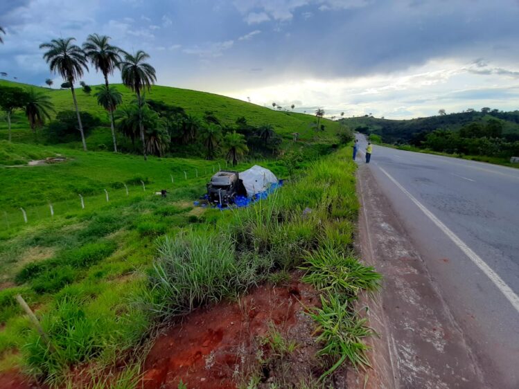 O motorista, de 39 anos, disse aos policiais que transitava na terceira faixa com o caminhão Volkswagen 24.280, de placa PYM-8D76, em direção à Itabira, carregado com galões de água, quando foi ultrapassado por uma carreta que acabou lhe fechando.
