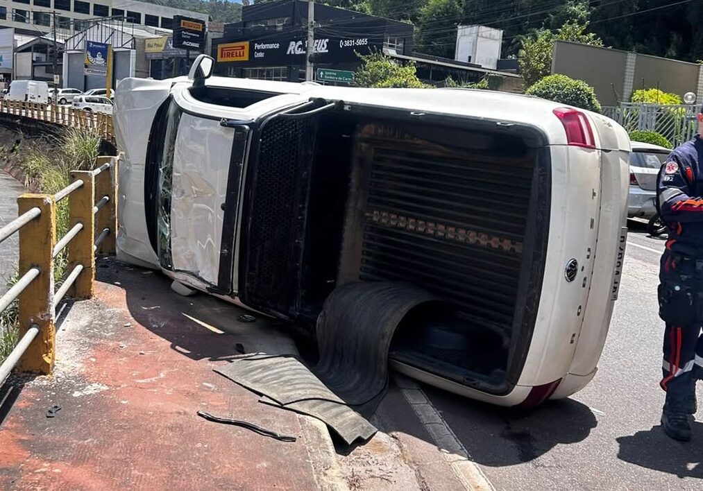 Um acidente de trânsito chamou a atenção de quem passava pelo Centro de Itabira no fim da manhã desta segunda-feira (2). Por volta das 11h25, uma Saveiro capotou após se envolver em uma colisão na Avenida Carlos Drummond de Andrade.