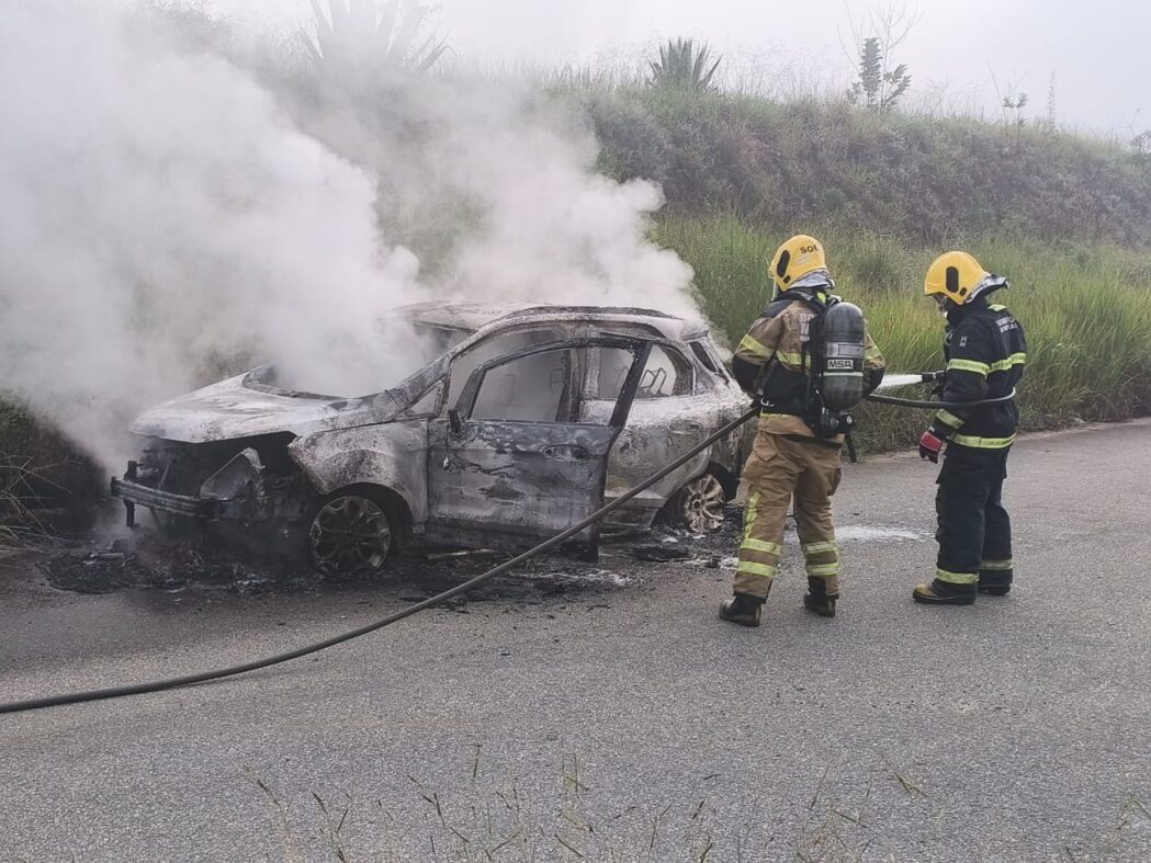 Quando os militares chegaram ao local, o automóvel já estava completamente tomado pelas chamas. A área havia sido previamente isolada por uma equipe da Polícia Militar que atuava na ocorrência.