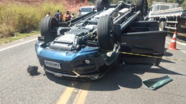 Mulher capota veículo ao desviar de animal na pista