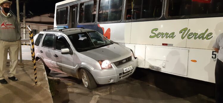 O ônibus da empresa Serra Verde, placa HKE-9145, seguia pela rua Daniel Jardim de Grisolia em direção ao bairro Amazonas e na rotatória, quando o motorista fazia uma conversão à direita para acessar a avenida Brasil, colidiu contra a lateral do carro.