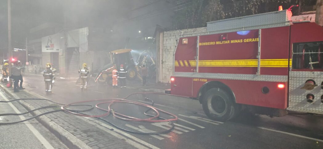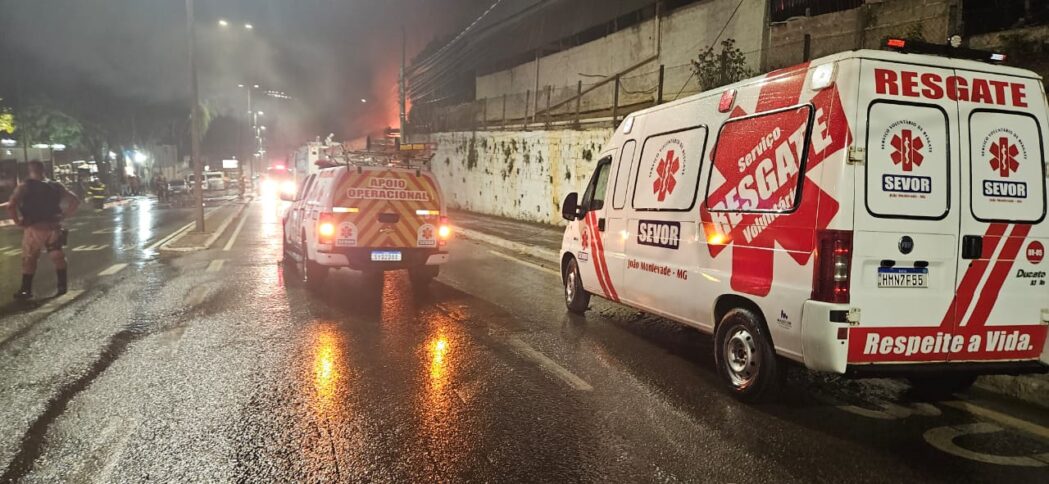 Galpão em chamas mobiliza Bombeiros e voluntários em João Monlevade