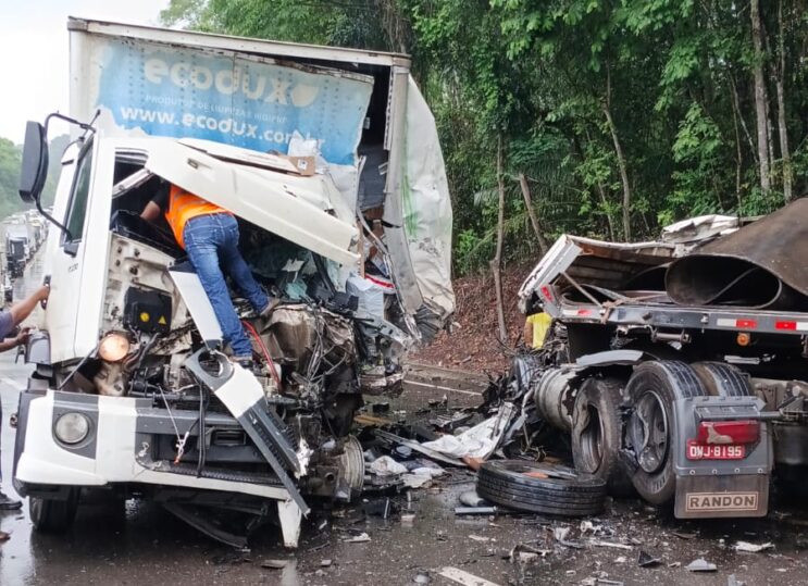 O acidente provocou a interdição total da rodovia, gerando um extenso congestionamento no trecho. A Polícia Rodoviária Federal esteve no local para registrar a ocorrência e auxiliar na organização do tráfego.