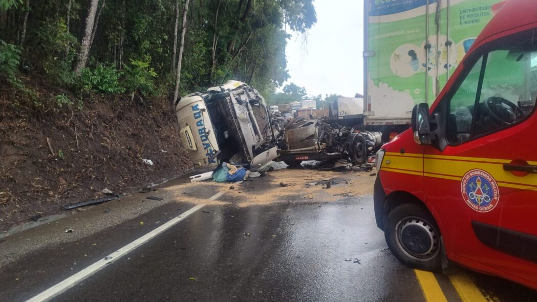 Um grave acidente registrado no início da tarde desta quinta-feira (4) deixou duas pessoas presas às ferragens na BR-381, em São Gonçalo do Rio Abaixo. A colisão ocorreu por volta das 13h e envolveu pelo menos quatro veículos, entre eles um caminhão e uma carreta.