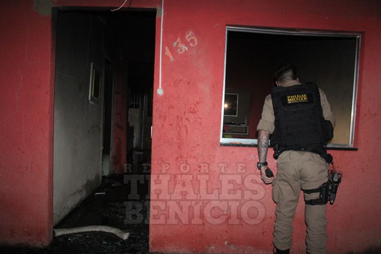 Em conversa com os militares, populares informaram que não tinha ninguém na casa no momento em que o suspeito chegou em um Gol, de cor vinho. O homem teria usado o carro para arrombar o portão da garagem.