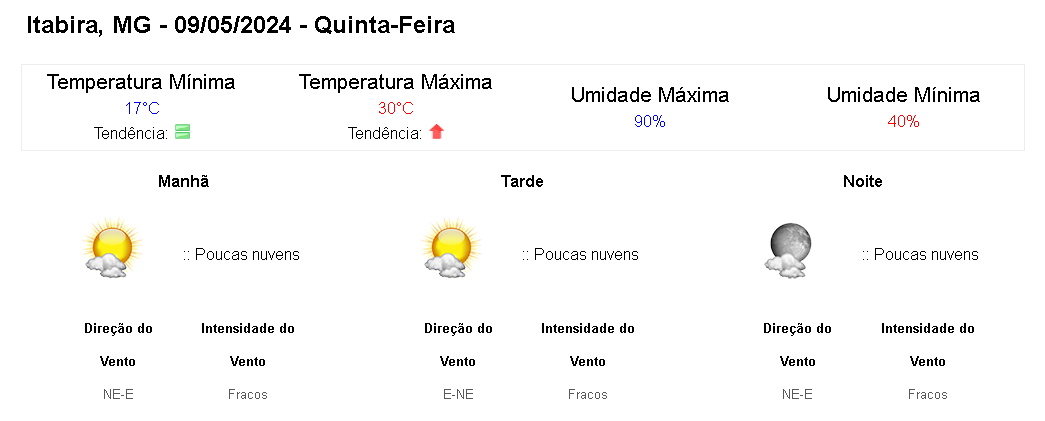 Clique aqui para conferir a previsão completa do Instituto Nacional de Meteorologia (Inmet).