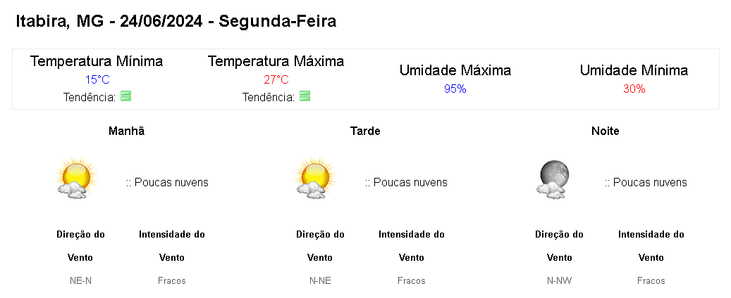 Clique aqui para conferir a previsão completa do Instituto Nacional de Meteorologia (Inmet).