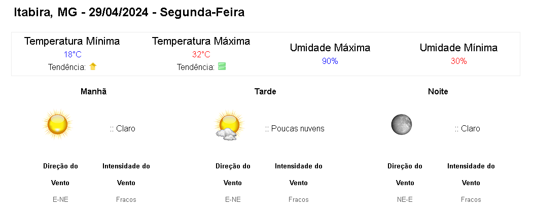 Clique aqui para conferir a previsão completa do Instituto Nacional de Meteorologia (Inmet).