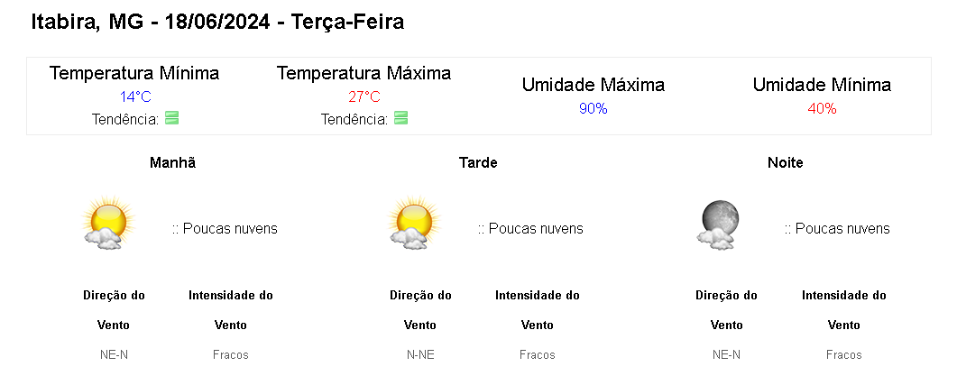Clique aqui para conferir a previsão completa do Instituto Nacional de Meteorologia (Inmet).