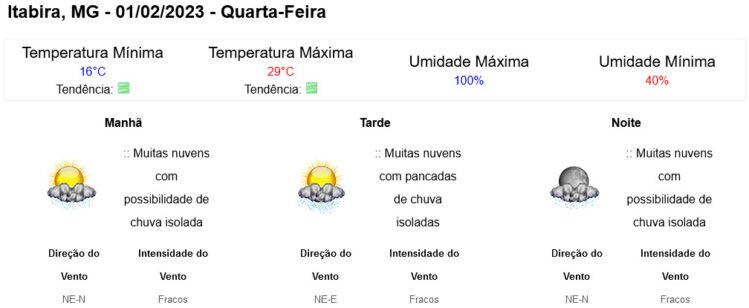 Clique aqui para conferir a previsão completa do Instituto Nacional de Meteorologia (Inmet).