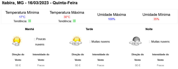 Clique aqui para conferir a previsão completa do Instituto Nacional de Meteorologia (Inmet).