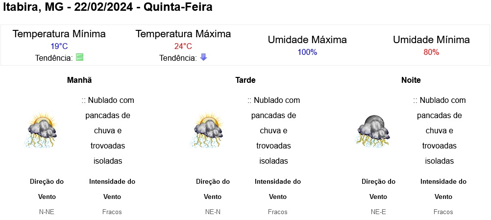 Clique aqui para conferir a previsão completa do Instituto Nacional de Meteorologia (Inmet).