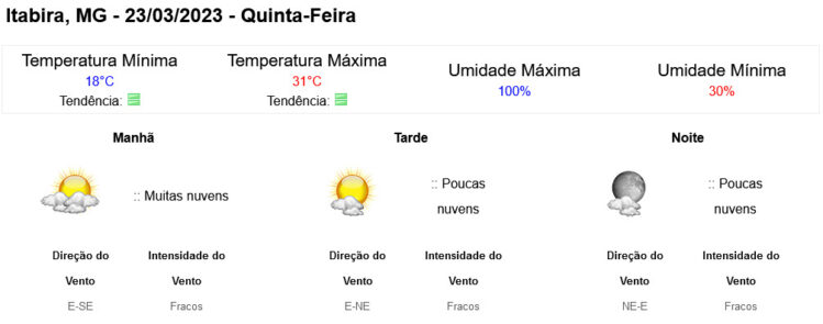 Clique aqui  para conferir a previsão completa do Instituto Nacional de Meteorologia (Inmet).