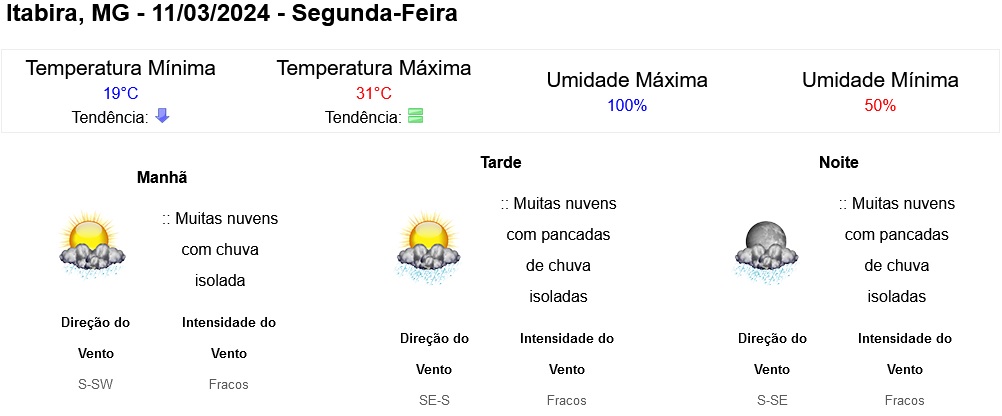 Clique aqui para conferir a previsão completa do Instituto Nacional de Meteorologia (Inmet).
