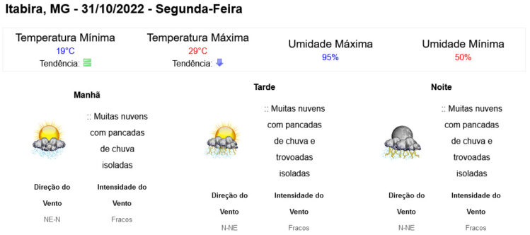 Clique aqui para conferir a previsão completa do Instituto Nacional de Meteorologia (Inmet).
