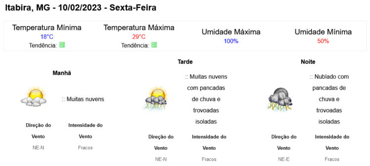 Clique aqui para conferir a previsão completa do Instituto Nacional de Meteorologia (Inmet).