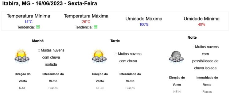 Clique aqui para conferir a previsão completa do Instituto Nacional de Meteorologia (Inmet).