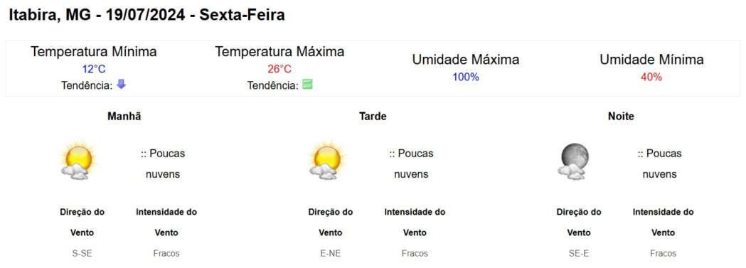 Clique aqui para conferir a previsão completa do Instituto Nacional de Meteorologia (Inmet).