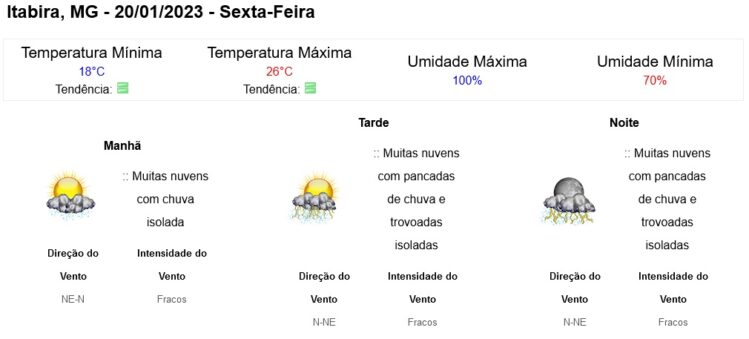 Previsão do tempo para Minas nesta sexta, 20 de janeiro
