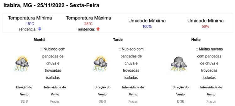 Clique aqui para conferir a previsão completa do Instituto Nacional de Meteorologia (Inmet).