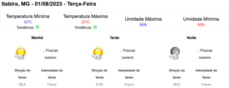 Clique aqui para conferir a previsão completa do Instituto Nacional de Meteorologia (Inmet).