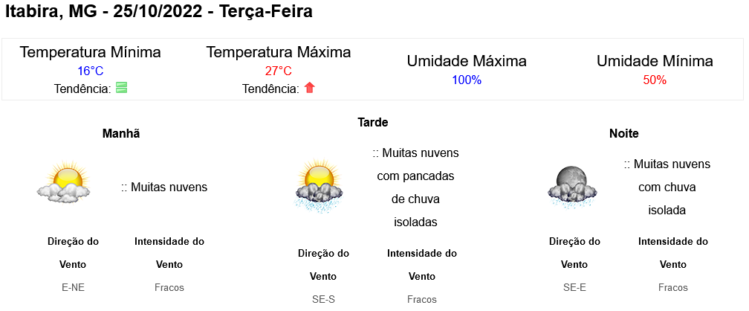 Clique aqui para conferir a previsão completa do Instituto Nacional de Meteorologia (Inmet).