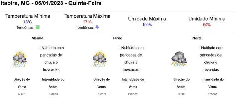 Clique aqui para conferir a previsão completa do Instituto Nacional de Meteorologia (Inmet).