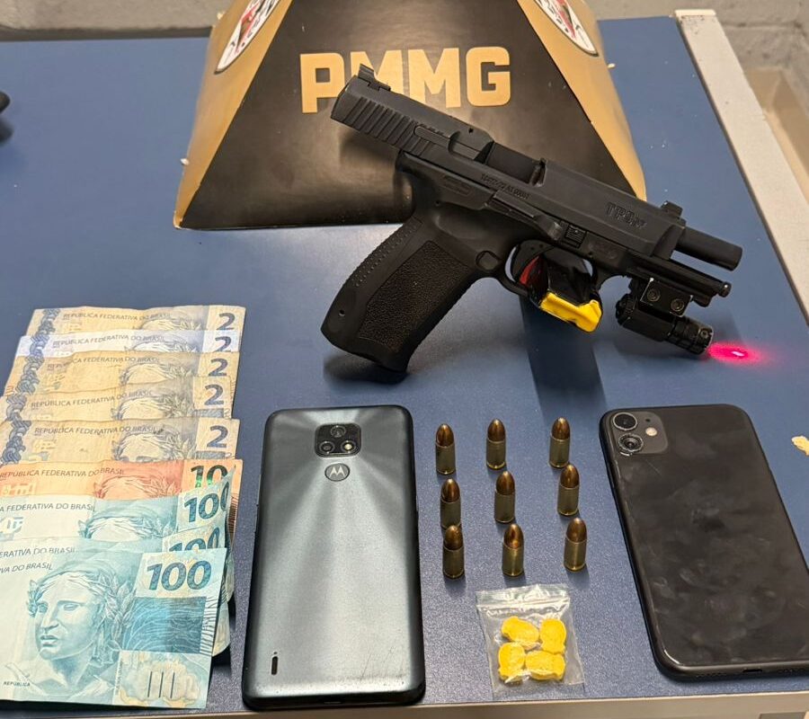 Na noite deste sábado (11), por volta das 22h30, a Polícia Militar prendeu um homem de 24 anos suspeito de tráfico de drogas e porte ilegal de arma de fogo de uso restrito, no bairro Gabiroba, em Itabira.