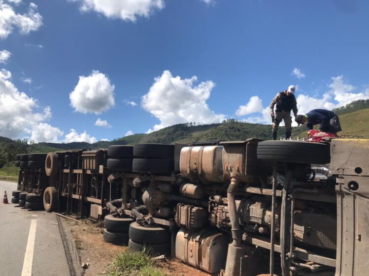 Carreta com carvão vegetal tomba na estrada de Nova Era