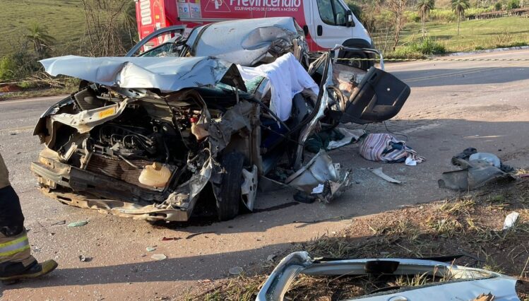 Carro bate de frente com caminhão e mulher morre na MG-129
