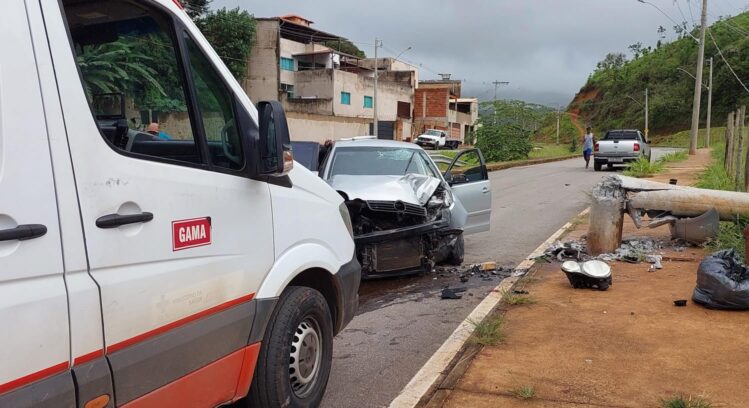 Carro bate e derruba postes na Avenida Machado de Assis